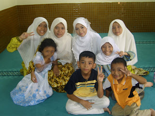 Kedua ibu bapaku yang amat ku kasihi..Abo dan Ummi.Jazakumullahu khairan kathira.. Teringat satu peristiwa lucu yang berlaku dek kerana kelam kabut dan kesilapan meng'set' masa.Rombongan pengantin lelaki sampai di kala pengantin perempuan masih lagi duk mengadap tukang andam yang lewat tiba.Kelam kabut dibuatnya..akak yang mengandam tu pucat lesi takut kena marah dek kerana kelewatannya tadi.Disebabkan itu,si pengantin lelaki terpaksa naik ke rumah tanpa dijemput oleh si isteri di depan tangga.Kui2..Saya yang berada di bilik tak senang duduk sambil terus menadah muka untuk ditempek dengan mekap yang tebalnya entah berapa inci.Terasa semacam hendak membuat persembahan opera saja.Sekeluarnya dari bilik.. "Aqilah,suami awak tu!"kedengaran seorang sahabat yang datang menegur kerana dilihatnya saya terpinga2 meneropong di mana pengantin lelaki berada.Rupa2nya sudah mengadap meja makan beradap.Isk2..kesian suamiku.